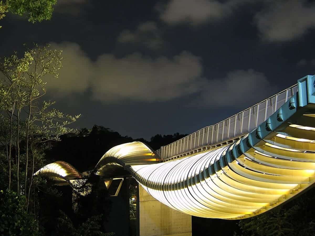 Egri qismlar chuqurchalar bilan uyg‘unlashib, dam olish uchun qulay bo‘shliqlar yaratadi. Kechasi konstruksiyaning yog‘och «qovurg‘alari» svetodiodlar bilan yoritilib, ko‘prikni singapur urbanizmi va raqamli arxitekturasining timsoli bo‘lgan yorqin to‘lqinga aylantiradi.