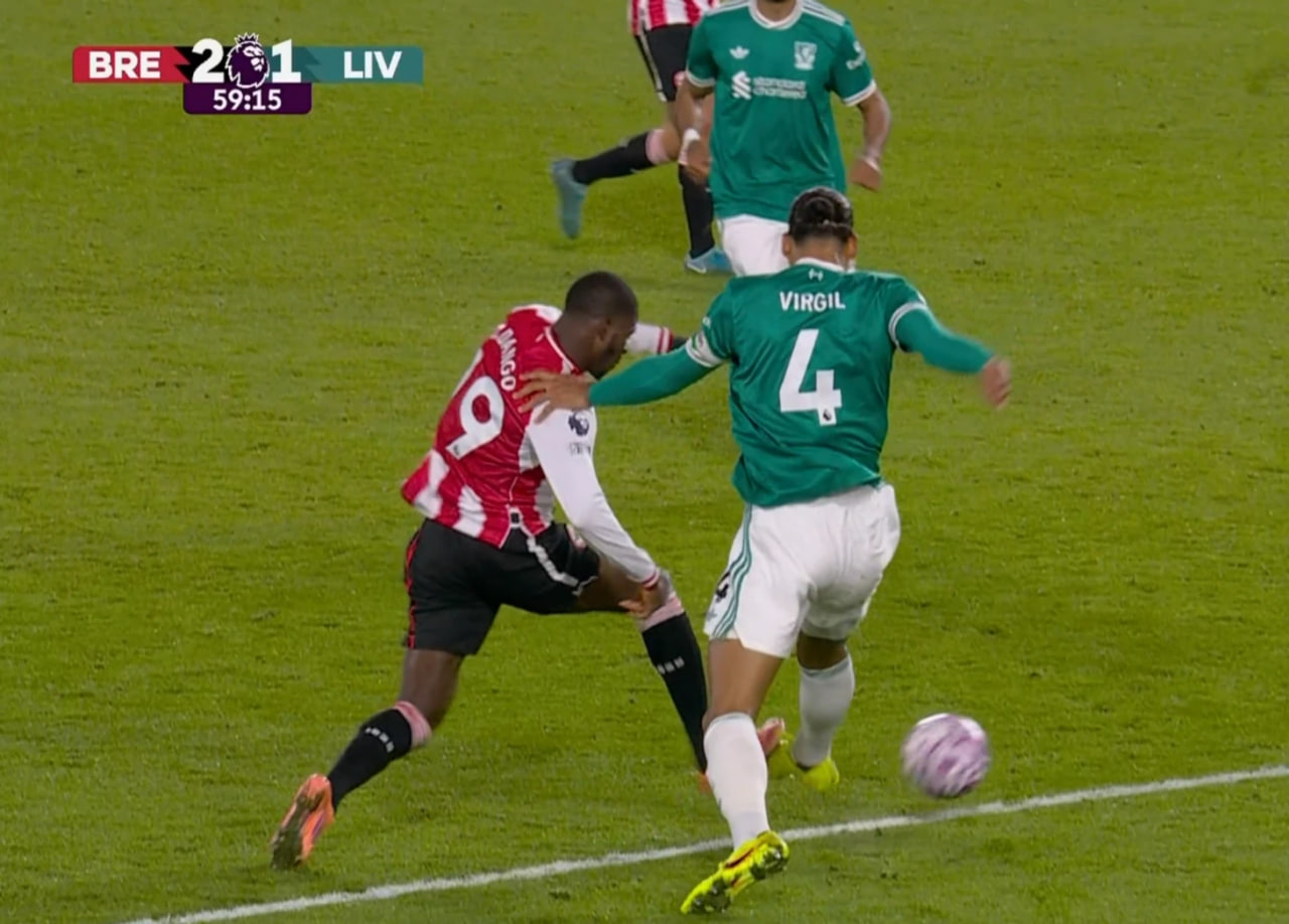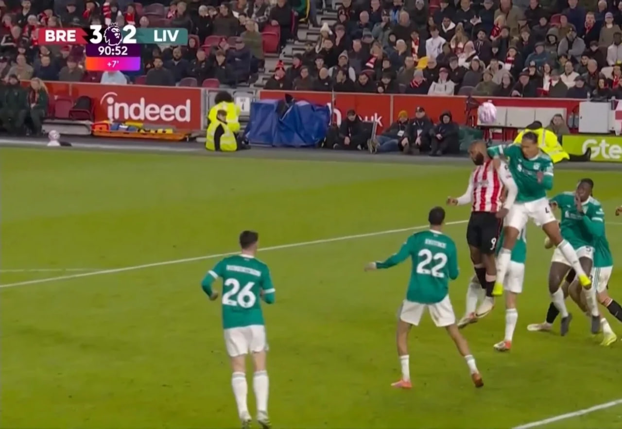 90+1-daqiqada van Deyk yana bir bor ehtiyotsizlik qilib, jarima maydoni ichida tirsagi bilan Tiagoning bo‘yin qismiga zarba berdi, ammo bu safar Robinson uni ayadi.