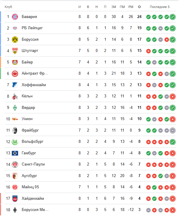 Shanba kunining eng dramatik bahsi Dortmundda bo‘lib o‘tdi, bu yerda «Borussiya» «Kyoln»ni o‘yinga qo‘shib berilgan oltinchi daqiqadagina taslim eta oldi. Holbuki bungacha «asalarilar»da gol urish uchun yetarlicha vaziyatlar bo‘lgandi, ammo mehmonlar darvozasidagi Shvebe sehrgar rejimini yoqib olgandi. Ammo hal qiluvchi daqiqada Bayyerning zarbasidan keyin to‘p rikoshet orqali darvoza to‘riga borib tushdi. Endi Niko Kovach shogirdlari kamida «Bayyer» va «Shtutgart»ning yakshanba kuni bo‘lib o‘tadigan o‘zaro o‘yini yakuniga qadar uchinchi o‘rinda qoladi.