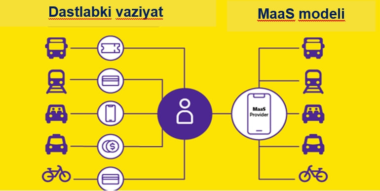 Transport. Toshkent shahrida surunkali tirbandliklar muammosini «Mobillik xizmat sifatida» (Mobility-as-a-Service, MaaS) konsepsiyasini joriy etish orqali hal qilish mumkin. Bunday tizim allaqachon Xelsinkida muvaffaqiyatli ishlamoqda, u yerda metro, avtobuslar, taksilar, karshering va velosipedlarni yagona raqamli platformaga birlashtirish atigi ikki yil ichida shaxsiy avtomobillardan foydalanishni 12 foizga kamaytirish imkonini bergan.