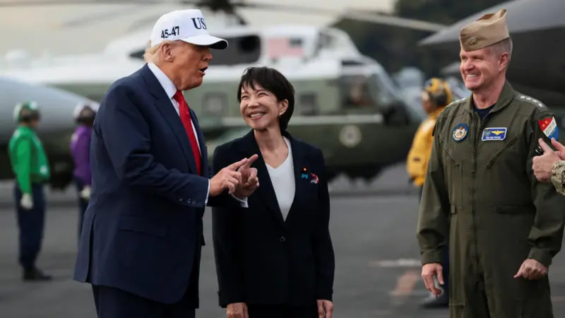Takaichi – Yaponiyaning sobiq bosh vaziri, Trampning do‘sti va golf o‘ynashdagi sherigi, 2022 yilda o‘ldirilgan Sindzo Abening yaqin safdoshi bo‘lgan. Bunga javoban u Amerika prezidentini Kambodja va Tailand, shuningdek, Isroil va Hamas o‘rtasidagi o‘t ochishni to‘xtatish borasidagi sa’y-harakatlari uchun maqtagan.