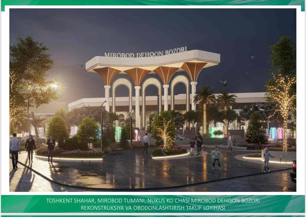 Loyiha doirasida bozor perimetrida piyodalar uchun qulay yo‘laklar, yashil maydonlar va infratuzilma yangilanadi. Hokimlikka ko‘ra, ishlar bir oy muddatda yakunlanishi rejalashtirilgan va shu davrda bozor faoliyati belgilangan tartibda davom etadi.