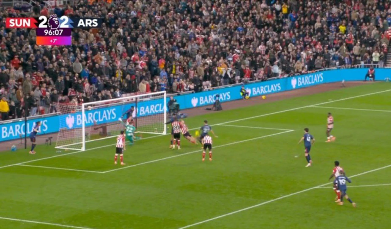 Shundan keyin mezbonlar ham to‘liq kuch bilan hujumga o‘tdi, londonliklar hisobni saqlash uchun himoyalandi. Rayya ikki bor yaqin masofadan yo‘llangan zarbani qaytardi. Agar g‘alabali hisob saqlab qolinganida, u oqshom qahramoniga aylangan bo‘lardi. Ammo hakam tomonidan qo‘shib berilgan daqiqalarda «Sanderlend» Brobbining chalqancha holatda bergan zarbasi bilan mag‘lubiyatdan qutulib qoldi. Bu epizodda «Arsenal»ning ishongan futbolchilari uyaltirdi: avvaliga Saliba Ballard bilan to‘p uchun kurashni boy berdi, keyin Gabriel Magalyayns pozitsiya tanlashda xatoga yo‘l qo‘ydi, Rayya esa o‘rinsiz vaziyatda to‘pga chiqib keldi va ulgurmadi.