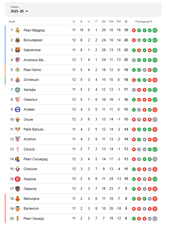 «Atletiko» ochkolar soni bo‘yicha «Barselona»ga yetib olgan bo‘lsa, «Vilyarreal» kataloniyaliklardan ikkinchi o‘rinni olib qo‘ydi. «Sariq submarinalar» uchun klub tarixidagi eng yaxshi to‘purar Jyerar Moreno jarohatidan tuzalib safdan qaytishi muhim ahamiyatga ega bo‘lmoqda. Ushbu tajribali hujumchi qatorasiga uch turda o‘z nomini tabloga yozdirib qo‘ydi. Shuningdek Moleyro ham juda yaxshi formada. Ushbu yarimhimoyachining navbatdagi goli bilan o‘yin masalasi hal bo‘ldi va endi jamoa kamida «Barselona»ning 10 noyabr kuni «Selta»ga qarshi o‘yini yakuniga qadar ikkinchi o‘rinda qoladi.