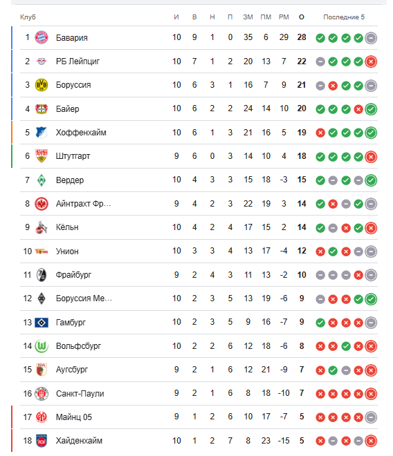 «Borussiya» esa Hamburgdagi o‘yinda minimal hisobdagi ustunlikni saqlab qola olmadi. Niko Kovach jamoasi so‘nggi vaqtlarda bir gol urib, hisobni ushlashni g‘alaba formulasiga aylantirgandi. Bu oldingi ikki turda — «Kyoln» va «Augsburg»ga qarshi ish bergandi. Barchasi dortmundliklar qatorasiga uchinchi o‘yinda 1:0 hisobida g‘alaba qozonishiga qarab ketayotgandi. Ammo «asalarilar» shu kuni gol urilgan hujumdan boshqa yaqqol vaziyatga ega bo‘la olishmadi, o‘yinga qo‘shib berilgan yettinchi daqiqada esa Kenigsdorffer hisobni tenglashtirdi. «Borussiya» hozircha uchinchi o‘rinni o‘zida saqlab qolayotgan bo‘lsa-da, yakshanba kuni «Shtutgart» ochkolar soni bo‘yicha quvib yetishi mumkin.