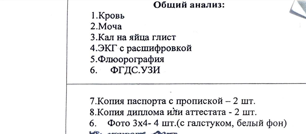 - shaxsni tasdiqlovchi guvohnoma (ID-karta yoki pasport);