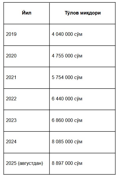 Oylik harbiy xizmat to‘lovi qancha