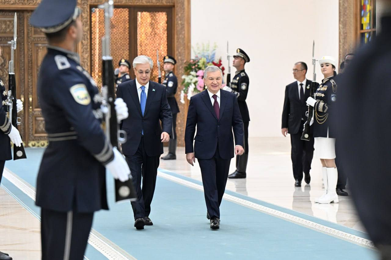 Ko‘ksaroy qarorgohida bo‘lib o‘tgan muzokaralar avvalida shu kunlarda amalga oshirilayotgan davlat tashrifi O‘zbekiston–Qozog‘iston strategik sheriklik va ittifoqchilik munosabatlari tarixida yangi bosqichni boshlab berishi qayd etildi.