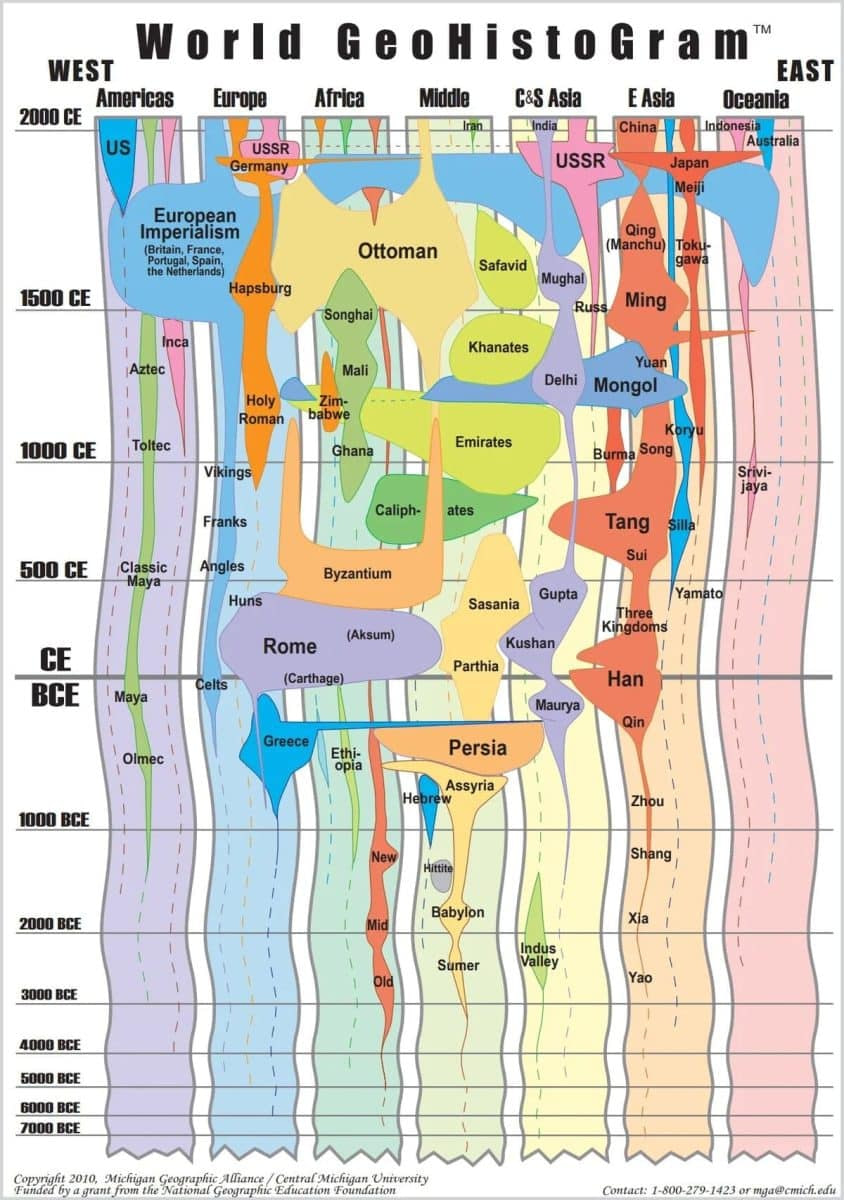 Dunyoning barcha eng yirik imperiyalarini bitta vaqt shkalasida ko‘rsatish. Aynan shunday vazifani o‘z oldiga qo‘ygan World GeoHistogram - AQShdagi Michigan universiteti qoshida ishlab chiqilgan o‘quv loyihasi.