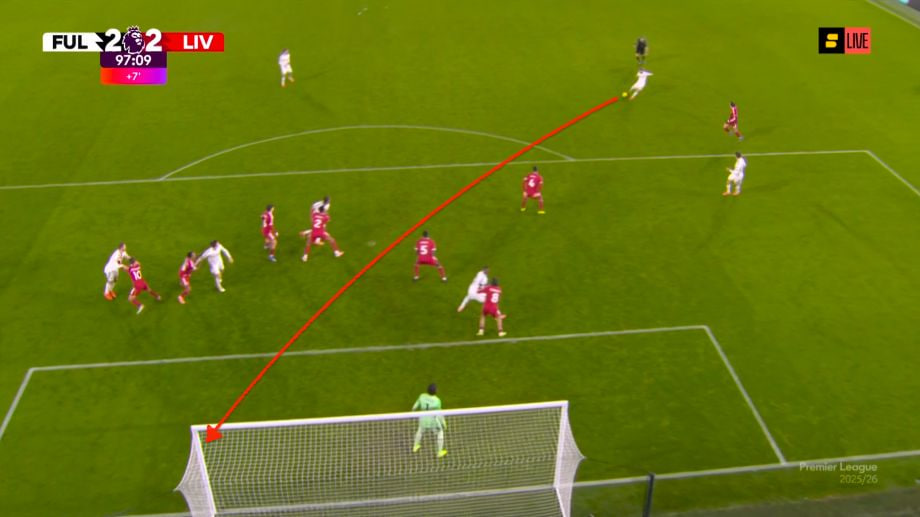 Mersisaydliklarning «Fulhem» bilan o‘yini tribunadagi muxlislardan biriga tibbiy yordam ko‘rsatilgani tufayli kechikish bilan boshlandi. Hakamning o‘yin boshlangani haqidagi hushtagi chalinganida esa «Liverpul»da Ekitike safdan chiqqani ma’lum bo‘ldi. Uning o‘rniga hujum markaziga tushirilgan Gakpo bir necha vaziyatlarni yo‘qqa chiqardi, mersisaydliklar tarbiyalanuvchisi Uilson esa o‘z imkoniyatidan foydalandi. U Ximenesning uzatmasidan keyin mezbon jamoa himoyachilari qo‘yishga uringan ofsayd qopqoniga tushmadi va darvozaning olis burchagini aniq nishonga olib, Alissonga hech qanday imkon qoldirmadi.