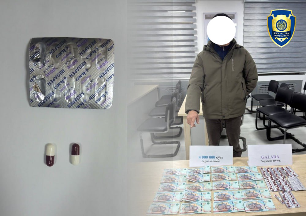 Bosh prokuratura huzuridagi Departamentning Yuqori Chirchiq tumani bo‘limi xodimlari boshqa huquqni muhofaza qiluvchi organlar bilan hamkorlikda o‘tkazgan tezkor tadbirda kuchli ta’sir qiluvchi dori vositalari noqonuniy savdosi bilan shug‘ullanib kelgan shaxs ushlandi. Ma’lum bo‘lishicha, F.M. fuqaro M.X.ga 100 dona “Galara” nomli dori vositasini 4 mln so‘mga sotgan vaqtida ashyoviy dalillar bilan qo‘lga olingan.