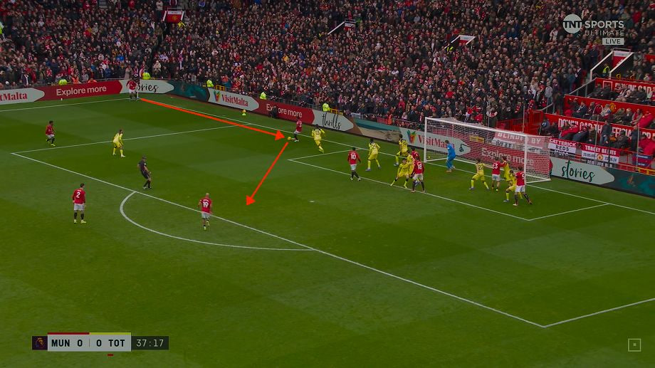 O‘yin oxirida Frank va-bankka qo‘l urib, o‘n kishi bo‘lgan holda mag‘lubiyatdan qutulib qolish uchun uchtalik almashtirish amalga oshirdi va hujumga urg‘u qaratdi. Ammo bu ish bermadi – bu o‘zgarishlardan o‘n daqiqa o‘tib Fernandesh Dalotning uzatmasidan keyin darvozani ishg‘ol etdi. Portugaliyalik yarimhimoyachi so‘nggi ikki oyni juda kuchli o‘tkazmoqda: u sakkiz turda «gol+pas» bo‘yicha 4+7 natijasini qayd etgan. U hozirda bir mavsumdagi assistlar soni bo‘yicha APL rekordini o‘rnatishni ko‘zlagan: hozirda undagi golli uzatmalar soni 12 tani tashkil etdi va bu borada rekordchi de Bryuynega (20) yetish uchun qolgan 13 turda 8 assist amalga oshirishi kerak bo‘ladi.