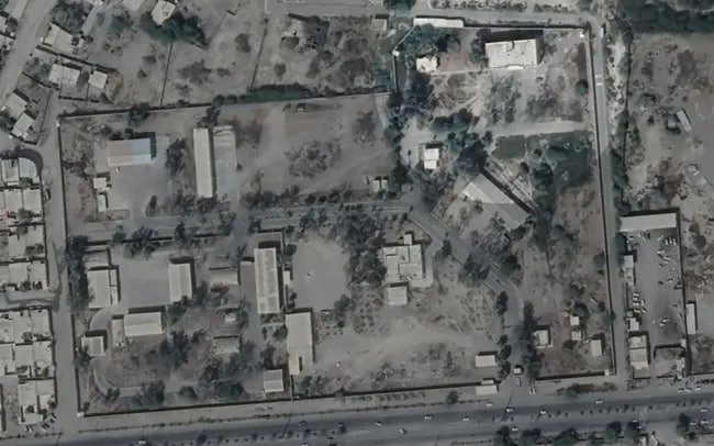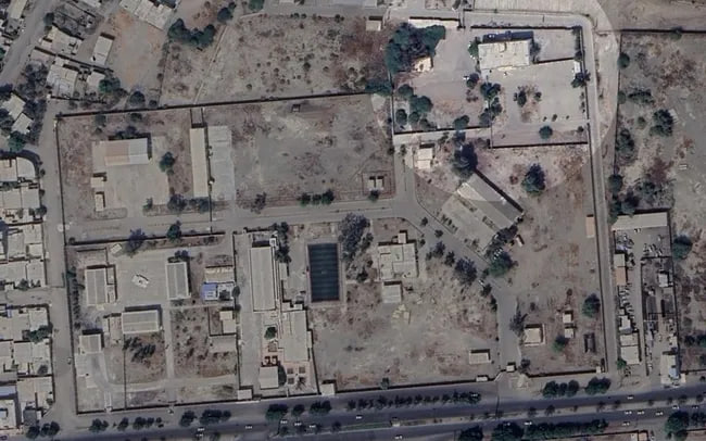 Sun’iy yo‘ldosh tasvirlaridan ma’lum bo‘lishicha, maktab binolari qachonlardir bazaning bir qismi edi, ammo 10 yil muqaddam undan panjara bilan ajratilgan. Vaqt o‘tishi bilan bino atrofida turli ranglardagi panjaralar va sport maydonchasi ham paydo bo‘ladi – ularni sun’iy yo‘ldoshdan ham ko‘rish mumkin.