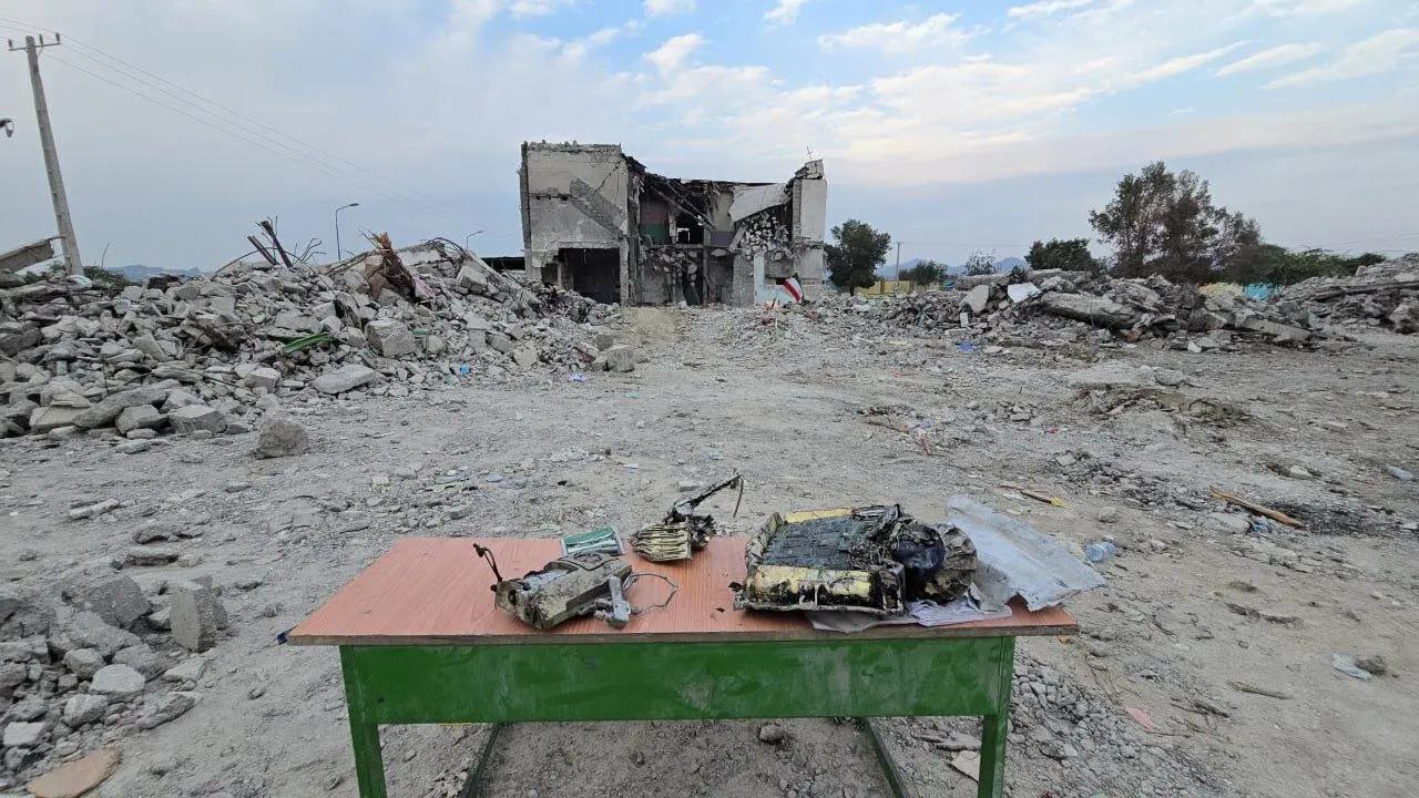 Bundan tashqari, Eron hukumati boshlang‘ich maktab xarobalari yaqinida stol ustiga terib qo‘yilgan qurol qoldiqlarini taqdim qildi.