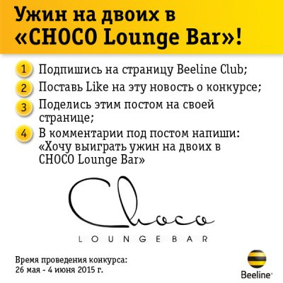 Beeline Club va Choco Lounge Bar Facebook tarmog‘ida yangi tanlov e'lon qildilar
