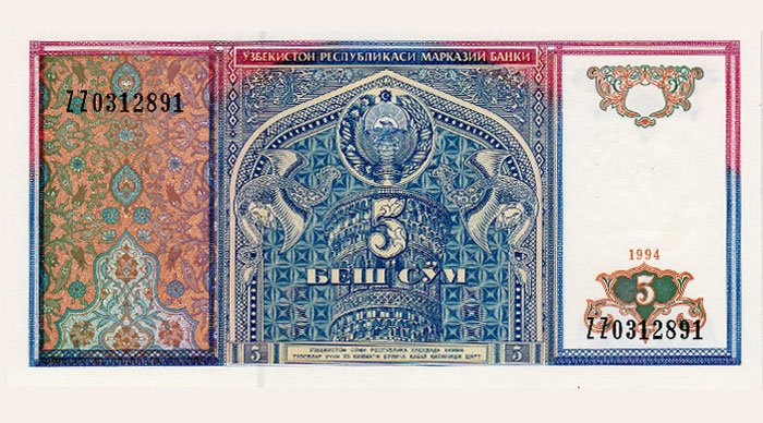 O‘zbekistonning 5 so‘mlik kupyurasi dunyoning eng chiroyli qog‘oz pullardan biri deb topildi