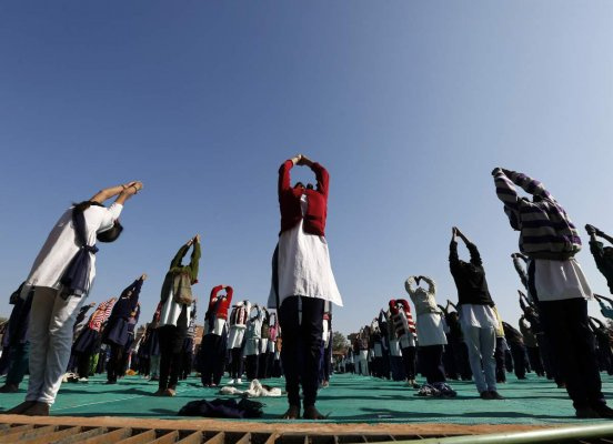 Air India uchuvchilari va ekipaj a'zolari yoga bilan shug‘ullanadi