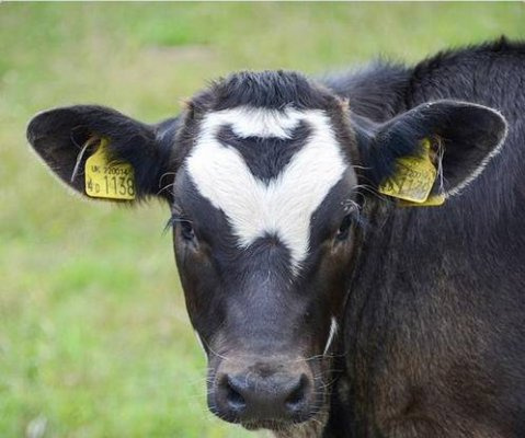 Buyuk Britaniyada peshonasida Minni Maus ramzli qashqasi bor buzoqcha yashamoqda