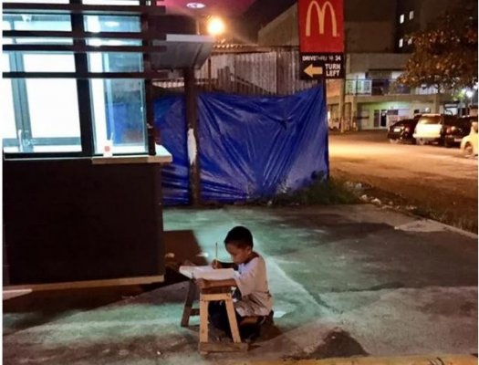 Fastfud chiroqlari ostida ko‘chada dars qilayotgan filippinlik bolakay butun dunyodan moddiy yordam olmoqda