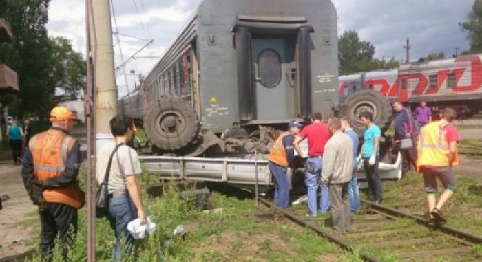 Qozonda poyezd va yuk mashinasi to‘qnashib ketdi