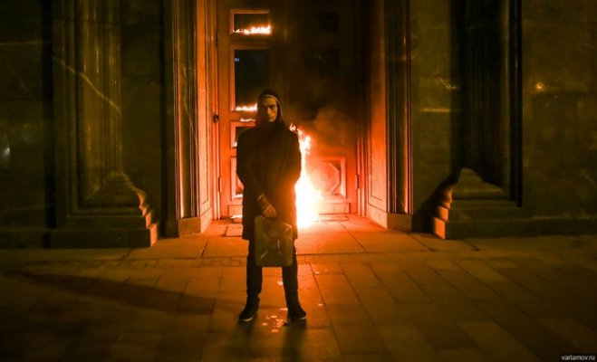 Rossiya Federal xavfsizlik xizmati binosi eshigini yoqqan rassom o‘z ishini “terrorga qarshi kurashish usuli” deb atadi