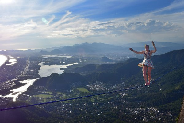 Amerikalik ayol 840 metr balandlikdagi dor yo‘ldan poshnali tuflida o‘tdi