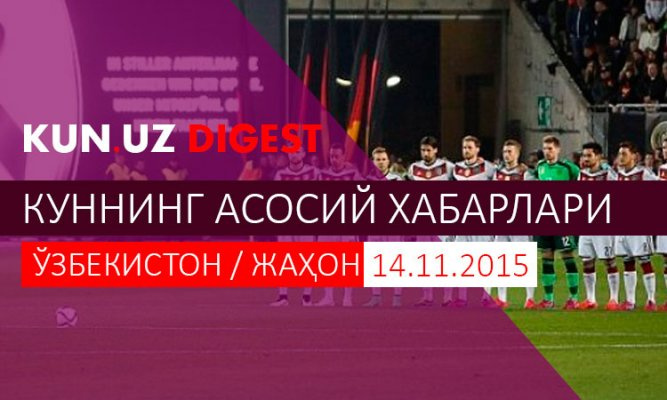 KUN.UZ dayjesti: 14 noyabr, kunning asosiy xabarlari
