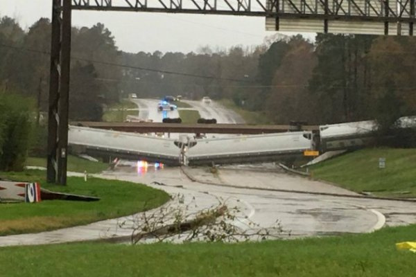 Texasda poyezd shamol tufayli ko‘prikdan avtomobil yo‘liga tushib ketdi