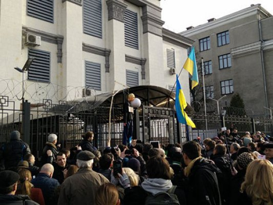 Kiyevdagi Rossiya elchixonasiga namoyishchilar tomonidan tuxumlar uloqtirildi