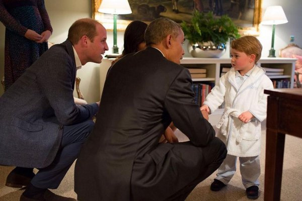 Kichkina shahzoda Jorj Obamani pijamada kutib oldi