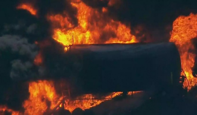 Oregonda poyezdning izlardan chiqishi oqibatida neft ortilgan sisterna yonib ketdi
