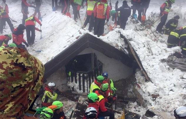Italiyada qor ko‘chkisi ostida qolgan mehmonxonada halok bo‘lganlar soni 7 nafarga yetdi