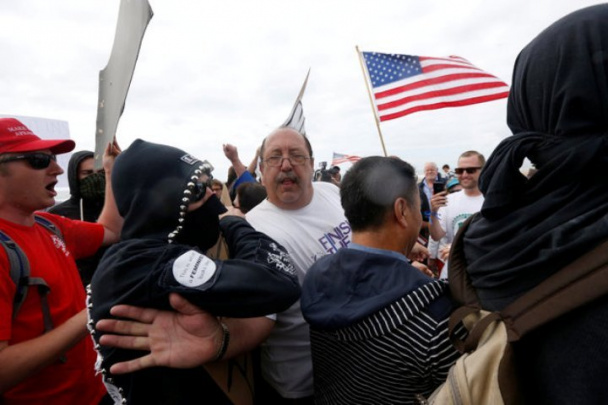 Tramp tarafdorlarining namoyishi ommaviy mushtlashuv bilan tugadi