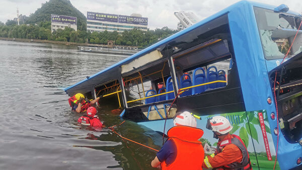 Xitoyda ichida maktab o‘quvchilari bo‘lgan avtobus suv omboriga quladi