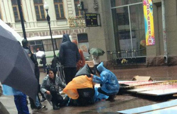 Moskvada bo‘lib o‘tgan "Muzeylar kuni" marosimi ishtirokchisining ustiga reklama banneri qulab tushdi