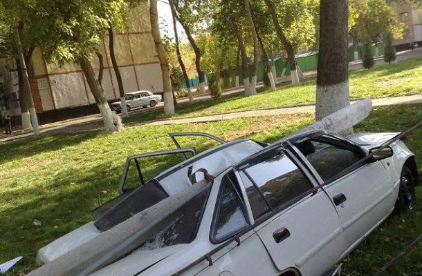 Toshkentda "Neksiya" avtomobili yo‘l chetidagi simyog‘ochga borib urildi