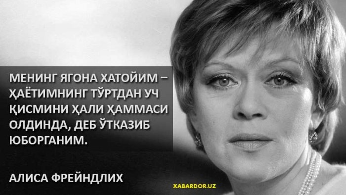Alisa Freyndlixdan 15 ta purma'no va go‘zal hikmatli so‘z