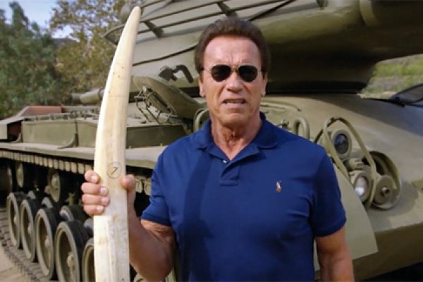 Arnold Shvartsenegger brakonerlik muammosiga e'tiborni qaratish maqsadida fil qoziq tishini portlatib yubordi