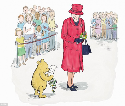 Vinni-Pux ilk marotaba Yelizaveta II bilan uchrashdi