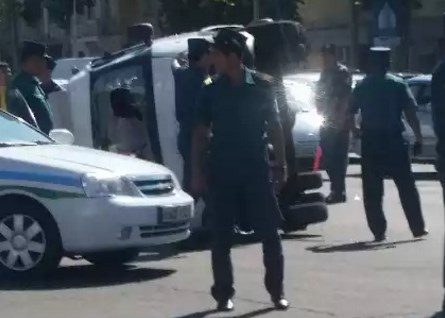 Grand Mir Hotel mehmonxonasi oldida Spark marshrutkani ag‘darib yubordi