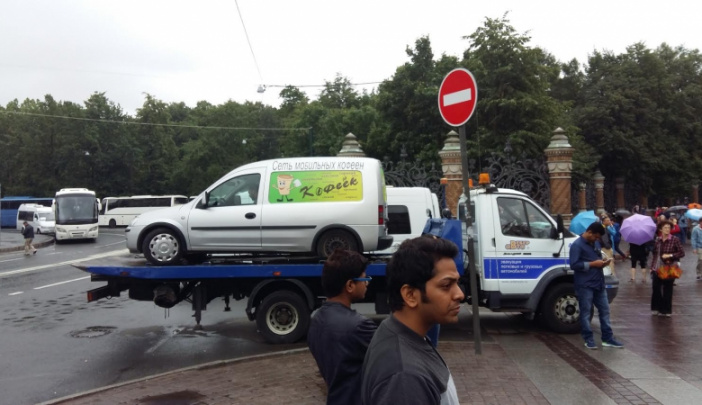 Peterburgda avtoqahvaxona egasi 3 kundan beri mashinasi ichida qulflanib olib ochlik e'lon qilmoqda
