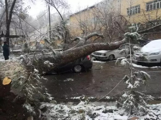Toshkent shahrida daraxt bir necha avtomobil ustiga quladi