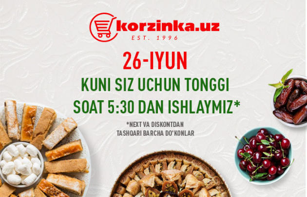 Ramazon hayiti kuni korzinka.uz do‘konlari erta tongdan ish boshlaydi