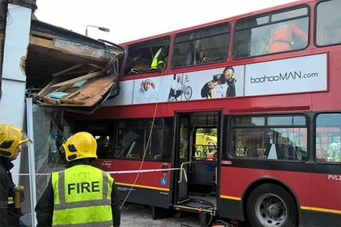 Londonda ikki qavatli avtobus do‘konga borib urildi