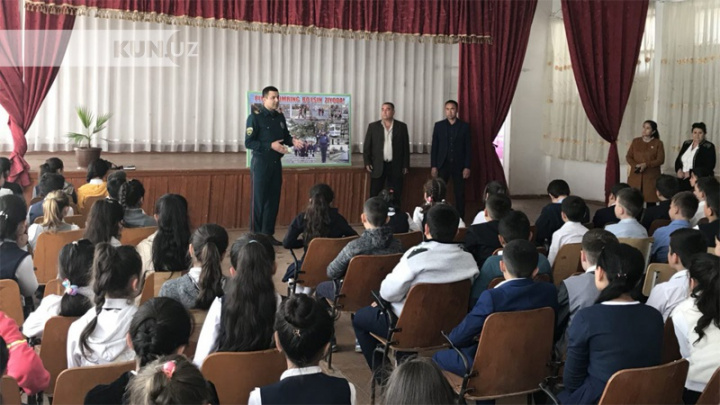 Samarqandda YPX xodimlari maktab o‘quvchilariga yo‘llarda harakatlanish tartib-intizomini tushuntirishmoqda