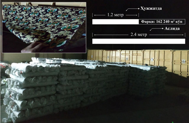 Hujjatlarda ko‘rsatilganidan ortiqcha bo‘lgan 676 mln so‘mlik matolar fosh etildi