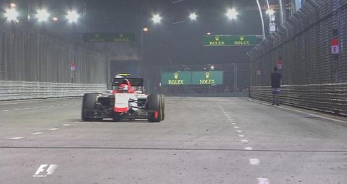 Singapurda “Formula-1” poygasi paytida muxlis trassaga chiqib sayr qilib yurdi