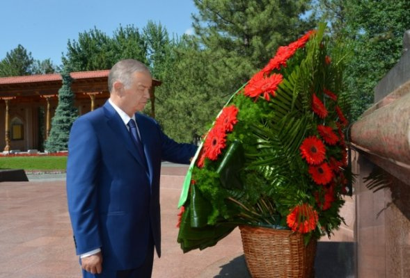 Islom Karimov Motamsaro ona haykali poyiga guldasta qo‘ydi