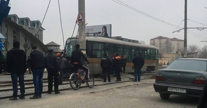 Foto: Samarqandda relsga ilk tramvay qo‘yildi