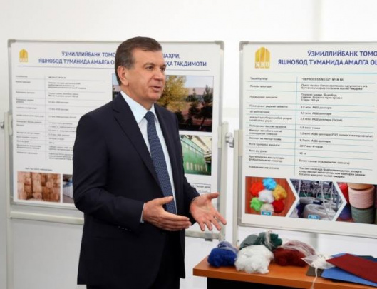Mirziyoyev Yashnobod tumanida qishloq xo‘jaligi mahsulotlari do‘koniga kirdi